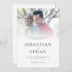 Modern Photo Overlay QR-kod Gay Bröllop spara datum. En komplett utformning av anpassadet med en QR-kod till bröllop webbplats på baksidan så att dina gäster kan se all online utan att behöva ha separata bilagor. Din QR-kod genereras automatiskt för att uppdatera exempelkoden i designen när du helt enkelt ändrar exempelwebbadressen i mallen med din egen webbadress för bröllop. Modern förenklad typografi som du lätt kan anpassa. Byt ut exempelfotot mot din egen favorit.