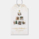 Personlig Juletiketter med Julgran-formad fotokollage med 6 bilder vid sidan av elegant minimalistisk typografi i guld färg.