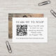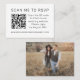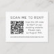 Gör det enkelt för gästerna att svara med detta dubbelsidiga kort med er förlovningsbild på framsidan och en tydlig "Skanna mig för att svara" QR-kod med webbadress på baksidan. Den rena moderna designen kombinerar en personlig foto-touch med digital bekvämlighet för era gäster. Anpassa bilden, QR-koden, svarsdatum och webbplats för ert bröllop.