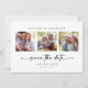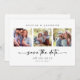 Vänner och familj i inbjudan för att spara datumet för bröllop med denna moderna utformning.