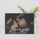 Fira och dina omhuldade bröllop-minnen med vårt fototackkort för personlig. Med det valda parets fotografi som mittpunkt fångar kortet på ett vackert sätt kärnan i din speciella dag. Med ett elegant-skript "Tack" placerat på ett snyggt sätt tvärs över bilden blandas sentimentalitet med stil. Perfekt för att du uttrycker din tacksamhet till vänner och familj på ett sätt som är både intimt och minnesvärt. Det är ett utsökt tecken på en dag fylld med kärlek.