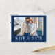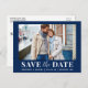Det moderna Trendiget Spara datumfotovykortet med blockskript och calligraphy-skriptkombination. Färg i marin blå eller plocka.