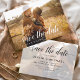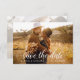 Handskrivna Bröllop spara datum-kort som har ett foto på framsidan och baksidan. Korten Save the Date Fall, Autumn, Winter, Vår eller Summer innehåller en modern handskriven kursiv skripttypografi med hjärtan som är elegant, enkel och modern till använda efter att du har minimalistisk enkel bröllopsdag firande.
