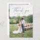 Modern fotoutblått Bröllop-skript Tack Kort