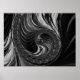 Modern Fractal Black White Metall Nautilus Swirl Poster