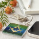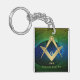 Snyggt guld fyrkantig och kompass Masonic-symbolens personlig-nyckelkedja med en modern ryggstödsbakgrund.
