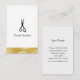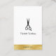 Moderne Friseur Visitenkarte mit Schere-Design, Gold, Schwarz, Weiß. Fügen Sie Ihre Kontaktinformationen auf der Rückseite hinzu.