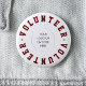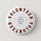 Frivillig knappnål med anpassad företags-/organisationslogotyp. "Frivillig" i mörkrött.