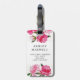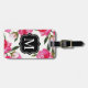 En djärv bagagetikett med frodiga fuchsia- och rosa akvarellrosor med grön lövverk, som inramar en personlig monograminitial i en svart medaljong. Baksidan innehåller anpassningsbar kontaktinformation. Denna livfulla blommiga monogramdesign gör ett vackert smycke för honungsmånad, brudtärna-gåva eller vigsel-resa-souvenir.