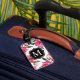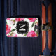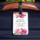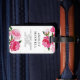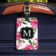 Resbagagepåsar med snyggt har en dekorativ svart ram med anpassningsbar i monogram brev i vitt, och en trendig i mönster med tropiska vattenfärgblommor i rosa och antika guld i schweiziska polka-punkter. Anpassa med kontaktinformation på baksidan.