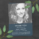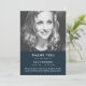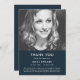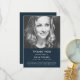 Modern, enkel begravning tack som du kort för att tacka i en modern minimalistisk design stil i marinblått. Kortet kan lätt vara personlig med ditt eget foto och din egen text för att skapa ett speciellt kort efter din älskade persons begravning, minnesmärke eller firande i livet. Bilden som visas är endast avsedd som illustration för att ersättas med ett eget foto. Platshållarbilden är av en vacker kvinna med vågigt blonda hår på en spotthög och är i svartvitt i svartvitt.
