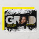 En modern känsla och funky för trendiget student från 2022 års klass. Den här designen har en svart platta bakom världen "GRAD", som är en fotomall som placeras i bild i din gradate. Innehåller gult och vit text.