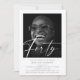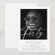 Fira de big 4-0 i stil! Gör det till en födelsedag att minnas med en oförglömlig inbjudan. Här är det perfekta sättet att inbjuda dina närmaste vänner och familj till din 40-årsfest - en modern inbjudan till fyrtioårsdagen med ditt favoritfoto, där "fyrtio" skrivs med en elegant genomskinlig scriptfont. Det är den perfekta kombinationen av modernt och klassiskt, med en grå font över en traditionell vit bakgrund. Markera din stora milstolpe i livet och gör det till en fest att minnas!
