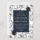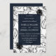 Nytt för 2019! Elegant med en contemporary som vrider vår Modern Garden blommigt bröllopsinbjudan har en bakgrund med skisserade blommor i vitt och svart. Dina uppgifter om bröllop visas i vitt mot ett rektangulärt inslag i midnattsblått. En modern men tidlös utformning som är perfekten för formellt firande under årets alla säsonger. Den här designen ingår i en samling. Besök vår butik. Kontakta oss via butiken eller skrivan om du vill ha hjälp eller anpassningsbar med ett e-postmeddelande på citronelladesing@gmail.com