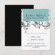 Designad för att matcha vår nya Modern Garden blommigt bröllop-samling för 2019 har denna Elegant och contemporary en bakgrund av blommor med skisser i vitt och svart. Dina uppgifter om bröllop visas i vitt mot ett turkos-rektangulärt inslag. En modern men tidlös utformning som är perfekten för formellt firande under årets alla säsonger. Anpassningsbarnas text för att acceptera/avböja text visas under i kontrasterande svart text. Anpassa till dina val av måltid eller gå in i val längs grund så att gästerna kan ange sina preferenser för maten i förväg. Kontakta oss via butiken eller skrivan om du vill ha hjälp eller anpassningsbar med ett e-postmeddelande på citronelladesing@gmail.com