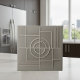 This modern geometric tile features a simple, minimalist line pattern made in warm, earthy tones. Soft taupe lines appear raised on a solid warm gray background, and create a balanced, contemporary focal point. The clean lines and tonal transitions give it a calm, grounded look—perfect for modern, Scandinavian, and neutral interior styles. Search ID1192 to see other products in this unique design set. Note: design may contain generative content