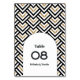Öka din bröllop-dekoration med det här chicen moderna geometriska kortet för bordsnummer. Med fet svart och vitt mönster accentuerat med skakande detaljer om guld och typografi om elegant är denna design perfekt för contemporary bröllop som använder sömnmedel och estetik för snyggt. Anpassa till parets namn och bordsnummer för att skapa ett minnesvärt och sammanhängande bröllop-tema. Idealisk för det minimala och moderna bröllop firande.