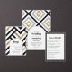 Gör ett påstående med denna moderna geometriska bröllopsinbjudan med fetstilt svart och grått mönster, skuggande accenter från guld och elegant typografi. Perfekt för contemporary bröllop, den här designen ger lyx och elegans. Fullständigt anpassade med dina bröllop-uppgifter.