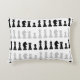 Klassisk svartvit schackkudde för schack älskare, med schack figurer i ett geometriskt mönster. Modern schack delar design