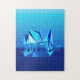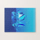 Pussel i en modern, geometrisk digital målning av en frakt i havets blå nyanser, från ljust akva till djup kobolt