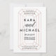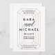 Den här inbjudan till glam-bröllop innehåller en faux ro guld som framträder med en formad geometrisk kontur med modern svart text över den. Den här inbjudan görs för att perfekt samordna med vår snyggt "Minimalist Modern Geometric Diamond" bröllopssviten.