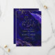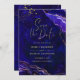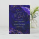 Modern utformning av trendiget bröllop. Vattentärsgeod med inslag av digital konst, nyanser av djupblått, lila, ro guld och guld (guld är inte riktigt guld utan färg), svart. Elegantens kalligrafi. Geometriskt inslag. Fet, modern, kontrast, mättad, anmärkningsvärd, unik.