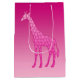 Giftsäck i en modern geometrisk, stiliserad giraffe mönster, med en silkesfärgad övertoning, i skuggor av djup fuchsisk rosa och pastellrosa, accentuerad med magenta