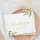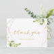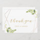 Tack för anpassningsbar-designade bröllop-kortet med modern snyggt, geometrisk guld ramar och vattenfärgsgrön design.