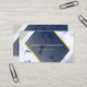 Det här moderna affärskortet för snyggt har en blå marmorbakgrund, ren blå mittgeometrisk form och guld linjer - Anpassa med information på både framsidan och baksidan.