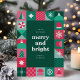 Skicka dina julhälsningar till familjen med den här roligten och det moderna fotojulkortet. Det här kortet har en mängd geometriska former som Julgranar, stjärnor, snöflingor, mittenformat, jultomt, prydnadsföremål osv. Ord, "merry and bright", är ett typset i ett vackert reflexteckensnitt. Observera att texten är låst och inte kan redigeras. Men du kan radera texten och ersätta den med ett eget anpassningsbar-meddelande. Inuti kortet kan du byta ut fotot mot ett eget och ange ett eget anpassningsbar-meddelande.