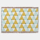 Trendigets geometriska mönster med mynblå, gyllene och vita trianglar.