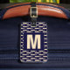 Modern Geometric Mönster QR Code Initial Navy Bagagebricka