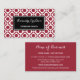 Dra klienten som en insida-dekorator med trendigets röda och vita geometriska cirkel mönster inredingsdesign affärskort med contemporary svart ram. Anpassa denna bild och trendiget mönster genom att lägga till namn i insida-designern. All text i den här visitkortsmallen kan anpassas efter ditt arbete eller efter eget val.