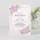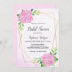 Inbjudningskort för möhippa har en vattenfärgsdesign med rosa vattenblommor, löv och ett faux-guld-geometriskt ram. Matchande möhippa finns också tillgängligt.