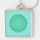 Modern Geometric Sunburst - Aqua and Seafoam Grönt Fyrkantig Silverfärgad Nyckelring