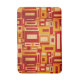 Den moderna Geometrics för det Retro mitt- århundradet badmattan presenterar ett geometriskt mönster av rektanglar och kvadrerar med en knastrastruktur. Färgerna är röd guld- gult, ochren och elfenben.