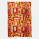Presenterar kvadrerar den moderna Geometrics för det Retro mitt- århundradet kökshandduken ett geometriskt mönster av rektanglar och med en knastrastruktur. Färgerna är röd guld- gult, ochren och elfenben.