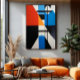 Rena geometriska former och vibrerande färg är utformade i väl avvägda sammansättningar, där matematisk precision konvergerar med fri abstrakt. I detta arbete firas den komplexa enkelheten i moderniseringen, som förvandlar inslag till ett slående synspråk.