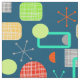 Ny ljus och färglös design inspirerad av den moderna mönstren från mitten av århundradet. En blandning av geometriska former och atomstjärnor i ton av grönt, orange, teal, gult, grått, blått och vitt.