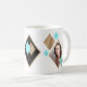 Skapa ditt eget 2-fotokaffe mugg med en chic och snyggt av modernt mönster med diamantgeometri i Shimmery guld, aqua och svart över en vit bakgrund. Ladda bara upp dina två foton i ställe på de exempelfoton som visas i designmallen. Redigera exempelmonogrammet med initialer för en anpassningsbar mugg som är unik för dig. Det här objektet är en vacker anpassningsbar för en vän, kollega eller familjemedlem eller en speciell behandling för dig själv.