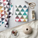 Modern färgstarka geometriska trianglar över vit bakgrund, sömlös mönster.