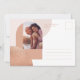 Trendig och modern spara datumkortsdesignen med bröllop-datumet som en framträdande plats i en fetstilslayout. Den moderna paletten ro guld och den beigefärgade paletten färg skapar ett modernt snyggt. Månad, Dag och År visas djärvt, och "Spara datumet" kombineras med en modern handstil med kalligrafi. Den omvända sidan har en djärv, modern geometrisk design med en modern ljusstyrd fotomask som visningar ditt speciella foto.
