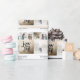 Modern geometrisk glatt typografi med flera fotojulklappar. Minsta monokromt svartvita och guld-effektgrafiska utformning. En del av en helgdag.