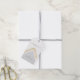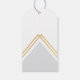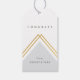 En modern presentetikett med anpassningsbart grattis-meddelande med guld- och rosafärgade triangelelement.