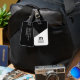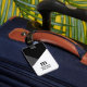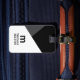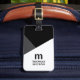 Modern utformning av bagagemärke med fet monogram och geometrisk bakgrund i anpassadet.