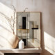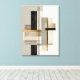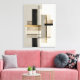 Ge din miljö en raffinerad och modern touch med denna abstrakta moderna geometriska väggkonst. Med rena linjer, balanserade former och subtila guldfärgade accenter skapar denna design en sofistikerad och strukturerad estetik.