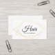 Den moderna visitkorten för hårstylist presenterar guld- geometrisk höjdpunkt (för inte verkligt) a med chic calligraphy.