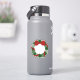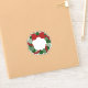 Den moderna geometriska julkransens krans har grönt punkter i tre olika skuggor och storlekar med en stav med mindre röda prickar som påminner om tranbär som lindar runt det runda mönster. Utandningen fylls med en röd båge. Digitalt skapat bild. Copyright ©Claire E. Skinner. Alla höger reserverade.