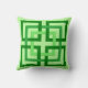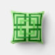 Dekorativ kudde i ett modernt mönster av förreglande fyrkanter, i skalade kalk till framväxande grönt, på bakgrunden till en pastellmynta grönt