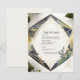 Vi presenterar vårt exklusiva "Modern geometrisk kort med små blommiga detaljer", en perfekt kombination av eleganta små blomknoppar, gröna blad, en grön gul geometrisk ram och en krämig bakgrund. Förbättrat med en touch av charm från den eleganta skrivstilstypografin, kommer detta kort säkert att fånga dina gästers uppmärksamhet och ge ett varaktigt intryck.